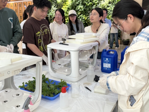 5月29日中午,综合楼一楼大厅热闹非凡,来自各系的同学在徐菲老师和高翔老师的带领下,开展了一场前沿的智能种植体验活动。此次活动旨在引导学生探索现代农业科技,培养学生动手实践、创新思维的能力,受到了同学们的追捧。