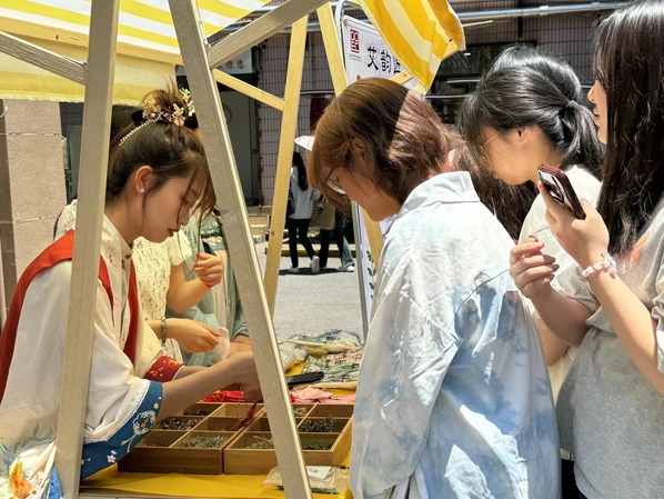 活动现场,同学们热情高涨,纷纷驻足参与。在艾草锤的制作环节,同学们亲手将艾草与布料等材料结合,制作出具有中医养生功效的艾草锤。而在古法中药香囊的制作中,同学们根据个人喜好挑选中药材,经过混合后装入精美的香囊中,整个制作过程充满了乐趣与探索。