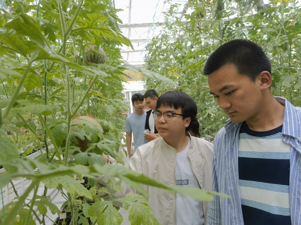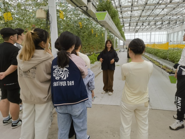 现代学徒制“华维班”往届学员梁兴云结合个人在企业的发展,向学弟学妹们介绍了自己的心路历程。梁兴云在华维公司担任设施生产管理岗位,经过企业师傅带教,目前已能独立进行温室生产管理。在她的带领下,同学们参观了华维公司的设施生产基地,了解了设施种植的管理要点和智能装备的操作规范。