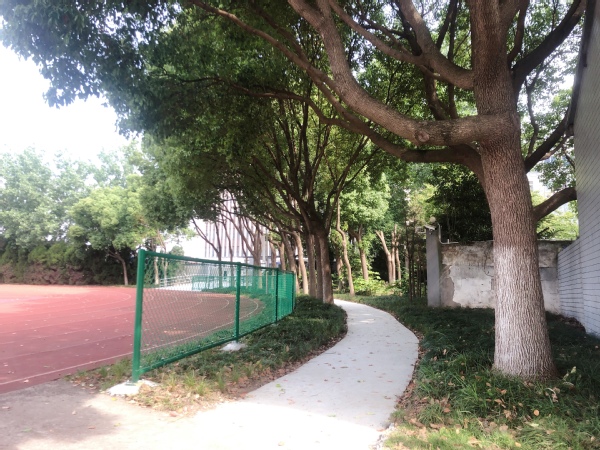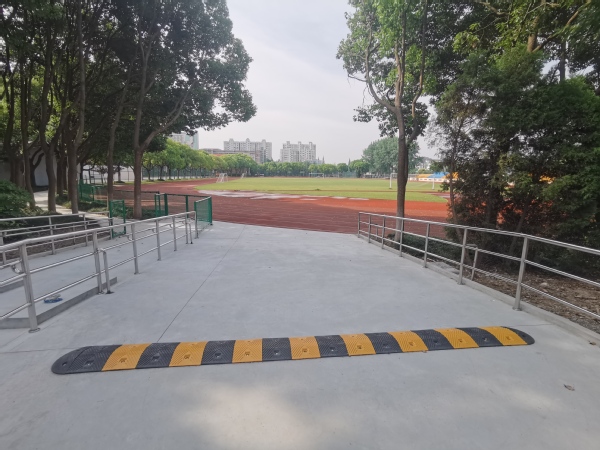 学校与绿邹商业广场仅一墙之隔,但内外地面存在50厘米的高差,商场侧围墙还存在一个调压站,经现场勘查与评估,本次在校园西北区域的围墙处开设总宽度约7米的出入口(包含车行道、人行道),满足学校开设次出入口的需要,最大限度地减少对现有设施的扰动,解决了应急出入口单一的问题,缓解了东侧中山二路出入口的交通压力。