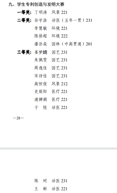 上海农林职业技术学院第二届专利创造与发明大赛获奖名单