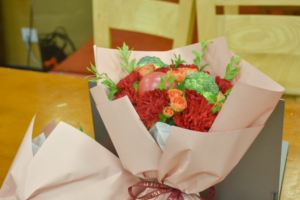 活动伊始,授课老师结合“农耕、农趣、农意、农情、农理、农味”六个方面,详解讲解了蔬果花束制作的基本步骤和搭配技巧,以及选择蔬果时需要注意颜色搭配、固定方法、造型搭建等事项,并在现场示范演示。同学们根据老师的讲解和指导,通过造景工艺、农作物与蔬果花束的相结合,手工制作完成蔬果花束制作。参与活动的同学表示:“蔬果花束很赞,以往的印象中花束由花组成,没想到日常的蔬果也能做成花束,很有实用性。”