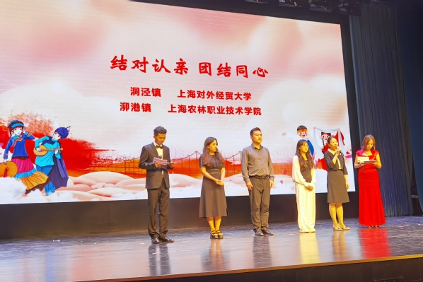 会上发布了松江区地校民族团结进步共建项目清单,此次发布的共建项目重点围绕结对认亲、实践锻炼、人才就业、文化交流、社区治理、学术赋能、乡村振兴等内容开展区校合作。我院与泖港镇发布共建项目“同心共铸 尚农泖耕”,以“五心”联建为抓手,通过宣讲铸红心、惠民举措暖民心、实践研学育农心、对话劳模树匠心、扶贫帮困心连心为内容的共建,通过发挥地校双方优势,携手做好民族团结进步工作。在结对认亲环节,我院土比么子牛同学与泖港镇党群办主任徐玲玲作为结对认亲代表,分享了自结对认亲以来和“家在上海乐居松江”的感受。