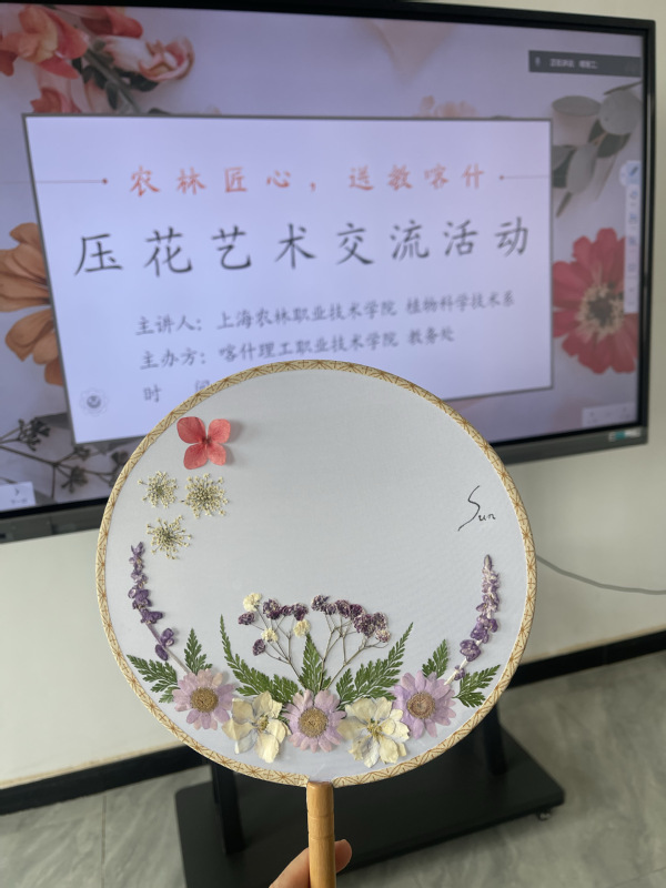 5月23日-6月6日,由植物科学技术系开展的压花艺术交流送教活动在喀什理工职业技术学院举行。本次活动旨在促进沪喀两地教育文化交流,深化美育进校园的理念,推动中华优秀传统文化在校园中的普及与传承。