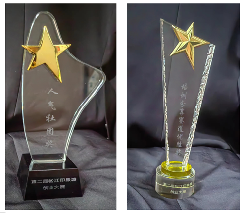 决赛现场,由植科系宓鑫妍、刘亚新、李礼等组成的项目团队在现场路演和专家提问环节表现出色,以3194票的最高票数获得最佳人气社团奖,并获得了印象城线上直播间使用权益和线下场地使用权,并与上海沪创聚企业咨询有限公司的创始人凌菊女士签订了结对指导意向书。