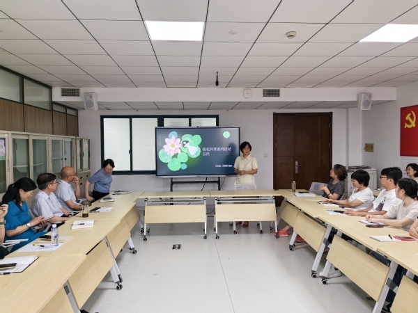 王玉春老师结合其近一年来荷花科普课题开展情况进行了交流分享,从科普知识、科普体验、宣传推广、周边开发等方面进行了详细介绍,课题的开展和《旅游市场营销》《研学旅行实务》等课程实训教学有机结合。陈晓莉、赵丹阳、王颖等老师作为团队成员,和王老师一起带领学生下乡村、走社区、进公园,共开展了16余场次荷花主题的科普活动,直接参与人数达到了666人次,有效推广了荷花知识和生态保护意识,为松江区科普推广工作添加了又一重要板块。