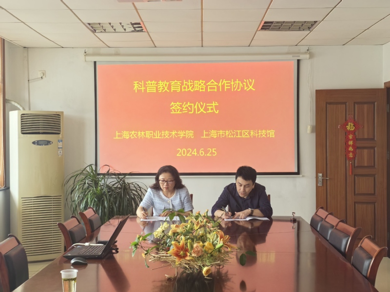 6月25日,学院与松江科技馆签订科普教育战略合作协议的签约仪式在松江科技馆举行,科研处副处长周燕华、松江科技馆馆长邱为及副馆长张诗瑜、徐辉,科研处与科技馆相关部门人员参加签约仪式。