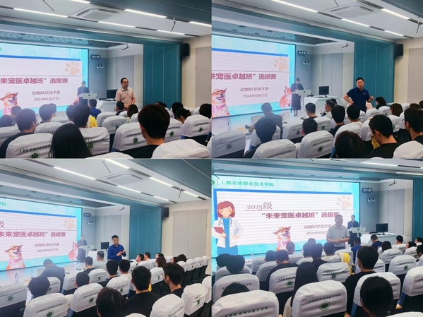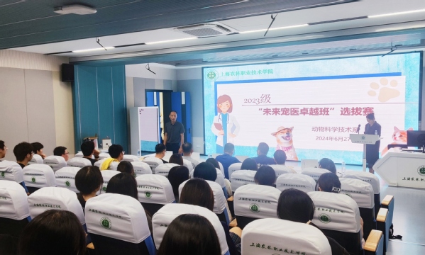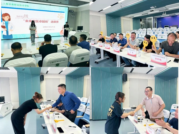 6月27日,2023级“未来宠医卓越班“选拔赛在综合楼303会议室举行,上海顽皮家族宠物医院、上海沪农动物医院、上海爱侣宠物医院、上海派菲尔德宠物医院、萌兽医馆五家企业共七位导师莅临现场,动科系主任滑志民、动科系专任教师以及34名卓越班候选人参加。选拔赛由白雪瑞老师主持。