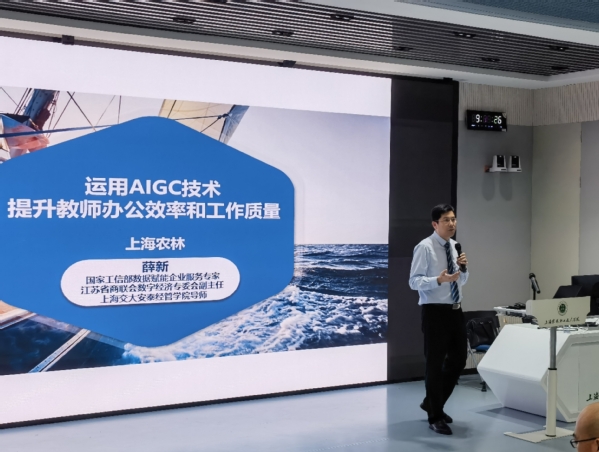 培训由工信部企业服务专家、上海交大行业研究院研究员、上海交通大学MBA导师薛新主讲。主要围绕人工智能的精髓,深入探讨AIGC技术在教育和办公自动化中的应用,以及如何利用AIGC工具进行创新性教学。在薛新老师的引导下,学员们对AIGC技术的掌握和应用能力均有显著提升,特别是在AI辅助教育创新模块中,学习如何运用AIGC工具创造思维导图、短视频等教学资源,推动教学内容的创新和教学方法的现代化。