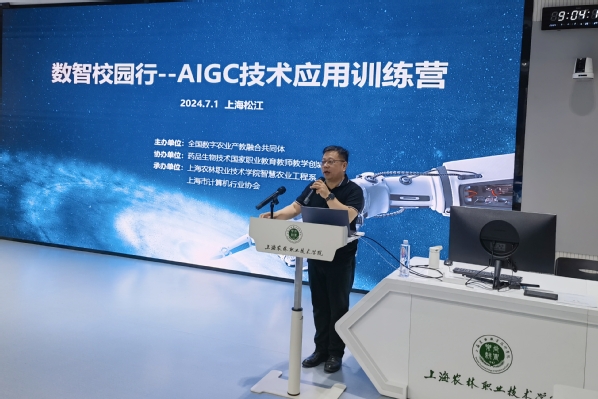 在数字化浪潮的引领下,人工智能技术的光辉已照亮教育创新之路,为进一步提升教育工作者的AIGC技术水平,7月1日,全国数字农业产教融合共同体携手药品生物技术国家职业教育教师教学创新团队、上海市计算机行业协会、智慧农业工程系举办“数智校园行-AIGC技术应用训练营”,全国数字农业产教融合共同体理事长、药品生物技术国家职业教育教师教学创新团队负责人、副院长张江致欢迎词,70余位来自校内外的一线教师参加培训。培训开幕式由全国数字农业产教融合共同体秘书长、智慧农业工程系负责人王妍主持。