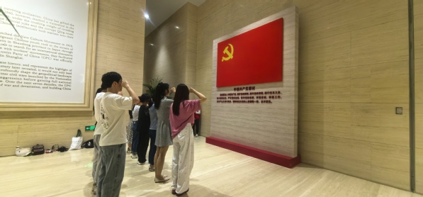 全体党员瞻仰了中共一大会址,并于中共一大纪念馆各展厅聆听语音讲解、观摩文物实物、观看动态视频,先后参观了“前仆后继、救亡图存”“民众觉醒、主义抉择”“早期组织、星火初燃”“开天辟地、日出东方”“砥砺前行、光辉历程”等展厅,深入了解中国共产党在上海创建的光荣历史、奋斗历程以及取得的辉煌成就。在中共一大会址宣誓大厅庄严肃穆的氛围之下,党支部书记带领党员们重温入党誓词,牢记初心使命。