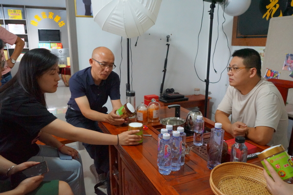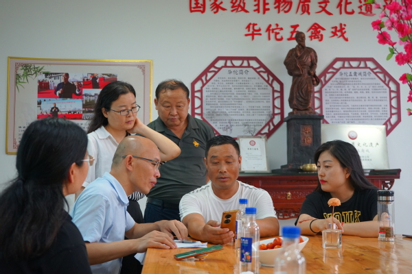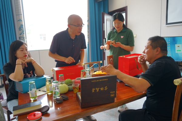 在国家级非遗华佗五禽戏展示馆,杨克江作为裕安区非物质文化遗产传承人介绍了华佗五禽戏非遗项目情况,交流了草泽公司农文旅融合发展的设想,团队为草泽公司的发展规划提出指导建议。经交流,团队未来一年将从企业数字宣传、抖音直播带货、石榴包装设计、农文旅融合发展等方面为草泽提供技术服务。