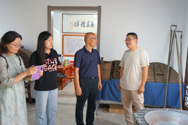 公司负责人、徐集花生糖制作技艺非物质文化遗产传承人张学斌带领团队参观了徐集花生糖非遗展示馆,介绍了公司的发展现状及存在的问题,服务团队就相关问题进行了讨论。