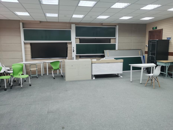 随着信息化水平的不断提高,开放式学习、互动式学习、人性化学习等新型课堂学习模式不断涌现,为更好的服务教学,提高课程创作、录制水平,由后勤处、信息中心共同实施综合楼402智慧教室的更新改造,项目分为配套装修、设备安装两部分。配套装修由后勤处承担,主要完成教室内吊灯更新、显示屏背景墙布置、地面更新、强弱电重排等,满足智慧化设施设备用电需求,配套装修于7月初开工,历时28天。综合楼402原为录播教室,本次提升改造主要通过智慧课堂教学软件、双屏系统、扩声系统、自动录播系统、智慧班牌系统、物联感知系统、中控系统等子系统的建设,建成一间集智能控制、精品录播、互动讨论、智慧物联为一体的智慧教室,为教学活动提供人性化、智能化的互动空间。综合楼402智慧教室将于9月新学期正式开放,目前学校智慧教室数量达到2间。