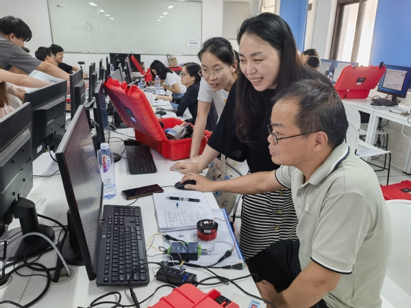 智慧农业工程系在物联网应用技术相关的教学、培训、竞赛方面积累了丰富经验。物联网应用技术教研室教师团队全体通过了物联网安装调试员(三级)认证,且均取得人社物联网安装调试员认证的考评员资格。老师们通过理论讲解与实践操作相结合的方式,帮助选手们深入理解物联网安装调试员岗位需要的各项技能。学生助教在培训过程中提供技术支持,协助老师解答选手们的疑问,确保每位选手都能掌握关键技能。