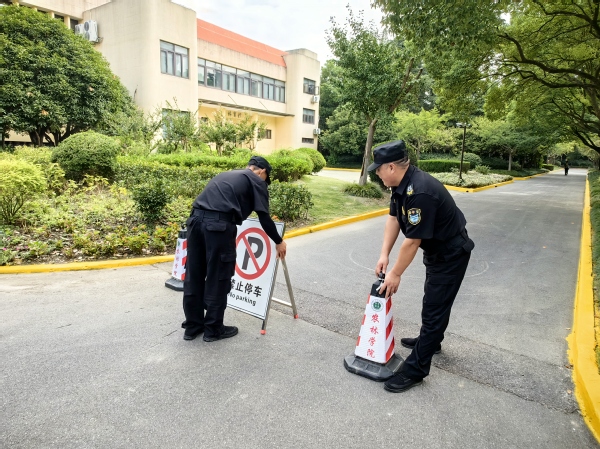 保安人员全面加强校园安全巡逻,对消防设施、监控设备等关键安全设施进行细致检查;并研究制定详细的迎新路线、车辆停放方案和应急处置预案。同时,提前在校园周边道路设置路障和警示牌,增加车辆停放指挥和疏导,保障校园周边及校内交通秩序。