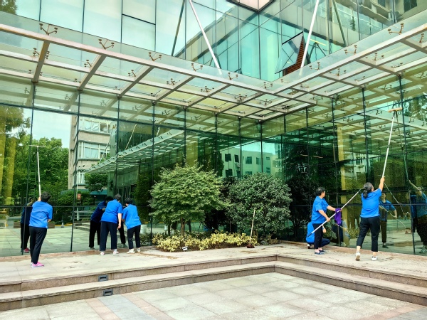 保洁阿姨们提前对校园内各个区域展开全面且深度的清洁行动,包括清扫道路、擦拭公共设施、打扫宿舍内外及清理落叶等,确保校园环境整洁。绿化师傅们增植补绿、修剪枯枝,清理绿地内垃圾、杂物,共同营造一个整洁干净、绿意盎然的校园环境。
