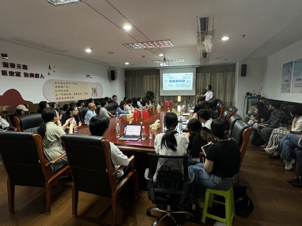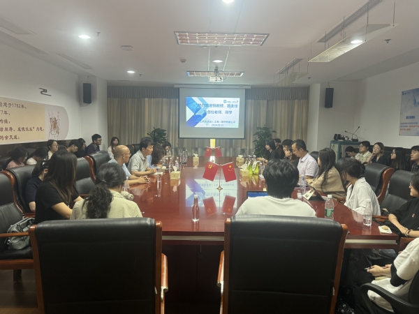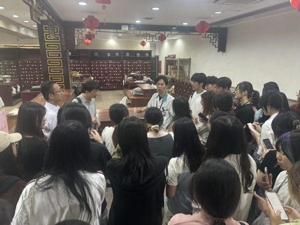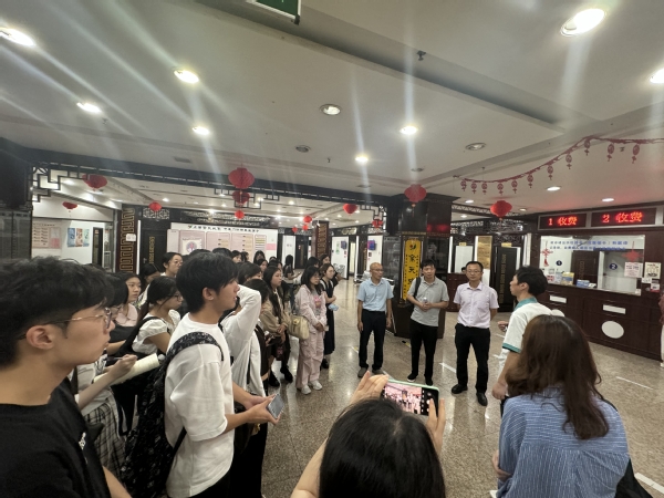 在松江余天成旗舰店,余天成总经理张许杰及相关部门负责人向师生介绍了余天成堂的业务范围、部门组成、中医门诊经营现状等内容。