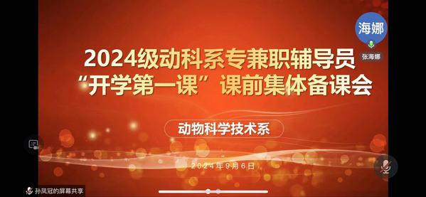 为做好新学期教育工作,9月6日,动科系学工队伍开展“开学第一课”线上集体备课会,会议由动科系党总支书记张海娜主持,动科系全体专兼职辅导员、班主任参加,围绕如何上好开学第一课,上好“大思政”课等主题进行了深入交流和研讨。