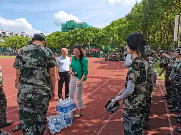 在慰问过程中,老师们还亲切地与新生们和教官们进行了交流,询问了军训中的困难与挑战,并给予了积极的指导和鼓励。这种面对面的交流方式,不仅加深了师生之间的了解与信任,也进一步激发了同学们的军训热情,为接下来的军训生活注入了新的动力。