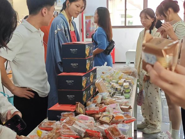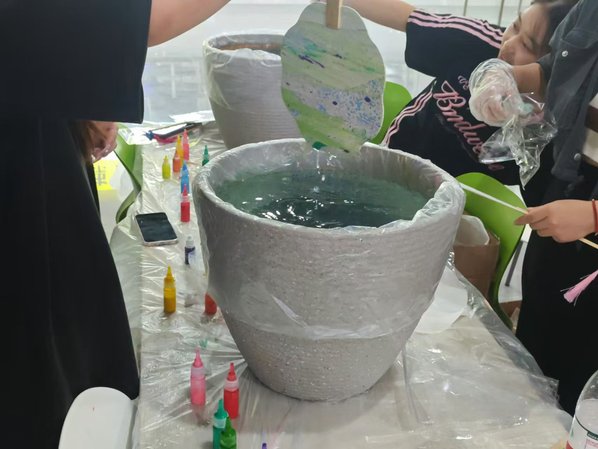 此外,植科系的志愿者们还在第一学生食堂为大家发放了美味的月饼,并组织了现场制作漆扇的活动。“捞月”活动不仅增强了同学们对中秋节的认识和体验,也促进了彼此之间的交流与合作,更加深入地体验到了中秋节的传统习俗和文化内涵。