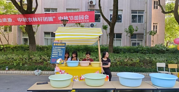 在中秋节来临之际,植科系的志愿者们提前来到一教广场,精心布置了中秋节游园会的“捞月”活动摊位。他们的努力和热情为即将到来的活动增添了浓厚的节日氛围。