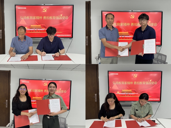 张海娜带领全体党员学习《中共中央 国务院关于弘扬教育家精神加强新时代高素质专业化教师队伍建设的意见》,详细阐述了意见的具体内容,为党员们深刻领会教育家精神指明了方向。为培养事业心强、责任感强、业务能力卓越的高素质青年教师队伍,同时充分发挥优秀教师的资源优势,会议上,动科系党政负责人与新进青年教师签订“传帮带”结对协议书,进一步浸润传承教育家精神,厚植尊师重教文化。