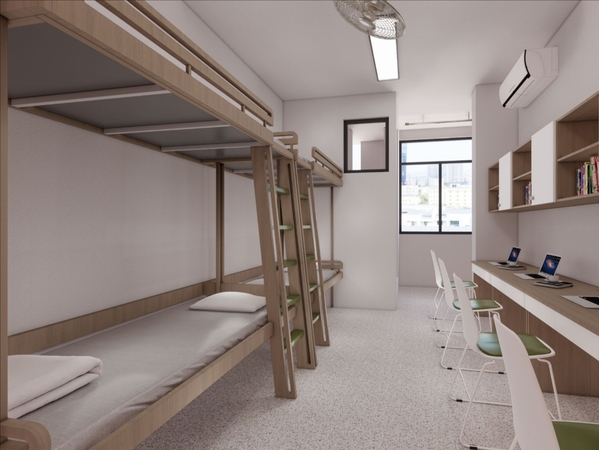 现场,后勤项目管理者简要介绍了实施背景、施工主要内容、进度等情况。施工单位现场负责人从楼宇功能布局、安全设施增设等方面做了详细介绍。功能布局方面,在维持原使用功能的基础上,优化了室内卫生间布置,通过物理隔离、增设排风设施、设置存水弯、选用防臭洁具等方法解决长期困扰学生的厕所反臭问题;通过重新布局浴室,增加洗浴工位;通过拆除屋顶废旧水箱、太阳能,开辟学生衣物晾晒的空间,今后学生不再为上下搬运被子、抢晾衣杆而烦恼。楼宇安全性方面,通过屋顶、外立面全方位翻新,从根本上解决漏水、瓦片掉落伤人的风险;通过分设独立强弱电箱、桥架等方式,解决楼道内强弱电线路混排、杂乱情况,进一步提升使用安全。人文关怀方面,在楼宇底层设置了无障碍寝室,预留党建活动室、自习室等空间,为同学们营造温馨的家文化。临近观摩尾声,项目管理者还向同学们分享了自己从一名普通司机逆袭成为一名工程总负责人的亲身经历,鼓励大家珍惜大学时光,努力学习,成为社会有用之才。