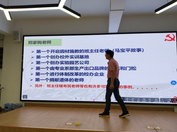 弘扬教育家精神,强化新时代理想信念。俞锦禄老师通过自身对文件的学习和理解,将教育家精神通过“理想信念、道德情操、育人智慧、躬耕态度、仁爱之心、弘道追求”六个主要方面娓娓道来。同时,结合学院建校以来多个具有代表性和影响力的优秀老教师事迹,将看似平凡却伟大,朴实而耀眼的教育家精神以一个个小故事展现出来。郑家驹、孙潜、何同昌等老师们虽然已千古,但耳熟能详的名字鲜活的立体起来。他们的感人事迹发人深省,进一步加深了年轻的党员教师们对教育家精神的理解和认识。