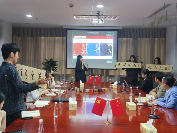 依托数字文创大师工作室,创意系扎实推进产教融合协同育人。9月26日下午,大师工作室成员倪海郡教授携手松江老字号品牌余天成的工作坊式课程《品牌策划》进入成果验收阶段,来自华东理工大学的30余名本科学生参加了本次课程答辩,余天成总经理张许杰现场评分,创意系党总支副书记张媛、副主任王海丽带领部分教师前往余天成本部大厦观摩。