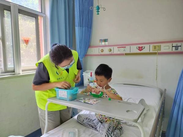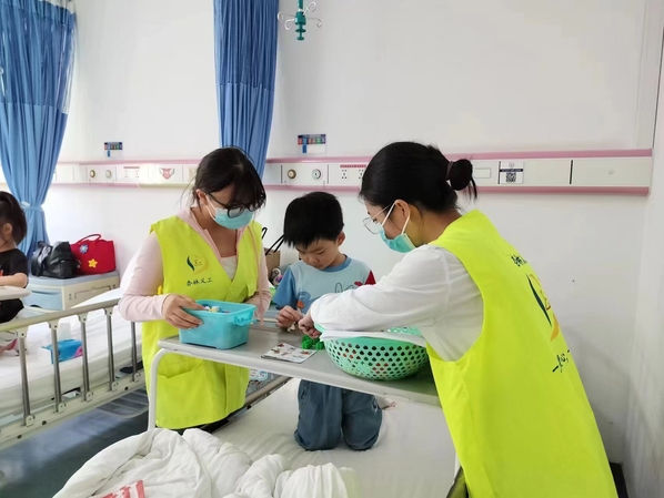 在中心医院的住院部,学生志愿者们身穿杏林义工提供的制服,带着满满的爱心和关怀,走进病房,与小朋友们一起玩游戏、画画、讲故事,帮助孩子们忘却病痛的折磨,为他们带去温暖和关怀。