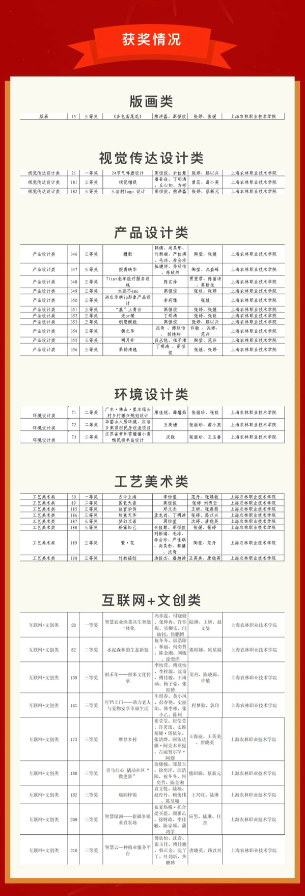近日,第九届“汇创青春”——上海大学生文化创意作品展示活动评奖结果公布。经学院推荐、专家评审、网上公示等程序,最终确定“优秀学生作品”1861件。其中,学院报送的版画类、视觉传达设计类、产品设计类、环境设计类、工艺美术类和互联网+文创类作品荣获一等奖3项、二等奖5项、三等奖27项。