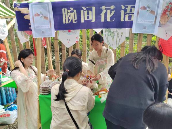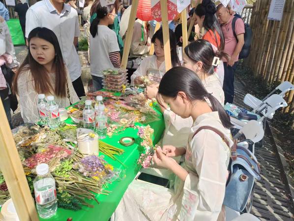 活动期间,植科系6名志愿者协助游客们亲手制作手腕花,让参与者在传承古老艺术的同时,融入自己的创新元素,使传统工艺焕发新生。这种传承与创新的结合,不仅增强了游客们对传统手工艺的认识和热爱,也激发了他们对传统文化传承和发扬的热情。