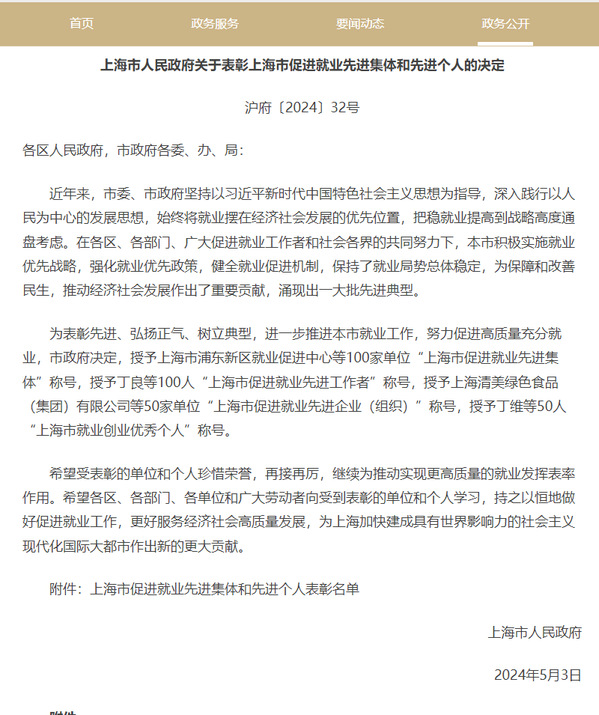 近日,上海市人民政府关于表彰上海市促进就业先进集体和先进个人的决定评选活动结果公布,陆昭君老师荣获“上海市促进就业先进工作者”荣誉称号,这一荣誉不仅是对她个人工作的高度肯定,也是对我校就业工作团队长期以来努力成果的认可。