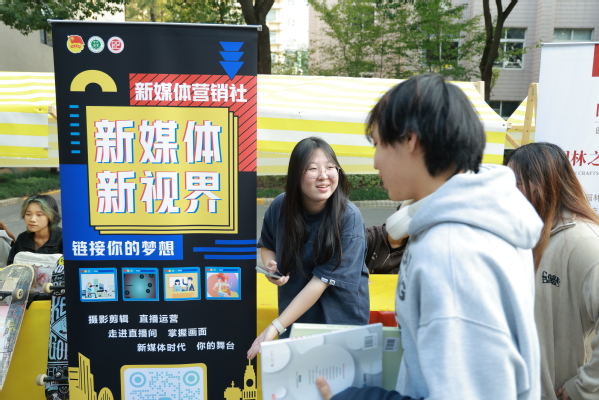 社联还特别设立了咨询交流区,为前来咨询的学生提供详尽的社团介绍、活动安排等信息。社联成员们耐心细致地解答学生的疑问,帮助他们深入了解各个社团的特色与优势。在整个招新过程中,同学们积极参与,热情如火。他们穿梭于各个社团的摊位之间,认真聆听社团的介绍,仔细观看社团的表演和作品展示,不时与社联成员进行深入地沟通与互动。经过深入了解和深思熟虑后,许多学生纷纷选择加入自己心仪的社团。