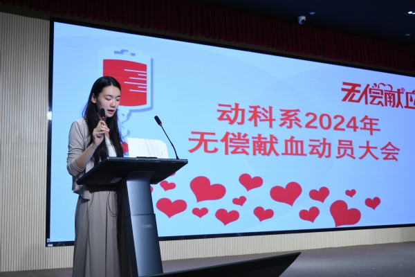 10月15日,动科系在综合楼205报告厅举办2024年献血动员大会。全体大二学生和中高贯通班的学生参加,动科系团总支书记孙凤冠主持会议。