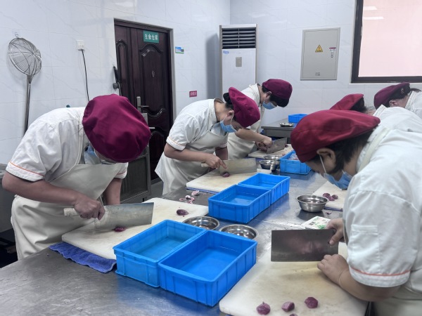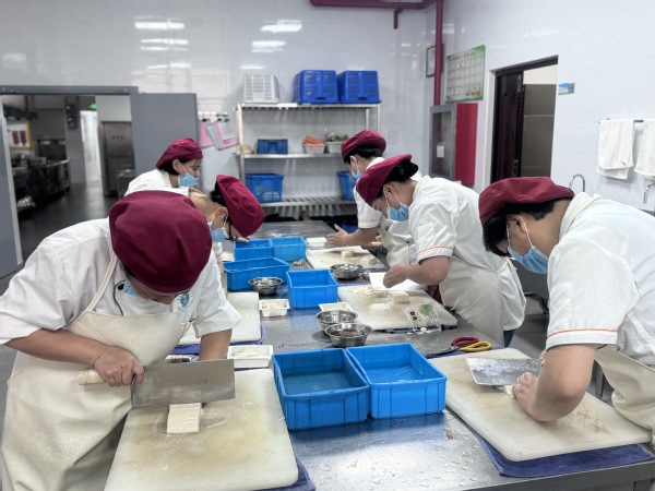 活动现场,氛围热烈而专注,参与训练的食堂职工们分成红案、白案和刀工三个专业小组,每个小组都承载着独特的训练内容和明确的目标。他们全神贯注地投入到各自的训练中,精心挑选食材,巧妙搭配,还融入创新思维,为传统菜肴和点心赋予了新的风味与造型,展现出极高的专业素养和创新精神。
