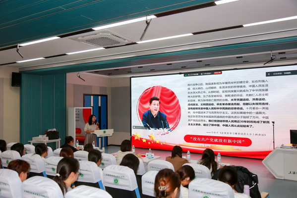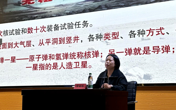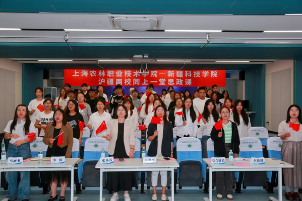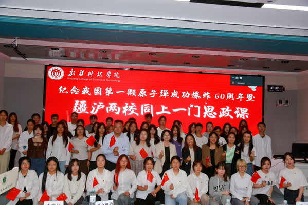 为引导青年学生自觉铸牢中华民族共同体意识,维护国家统一,促进民族团结,适逢纪念我国第一颗原子弹爆炸成功60周年之际,10月16日,我院联合新疆科技学院开展“强国复兴有我,厚植爱国情怀”沪疆两校同上一堂思政课。两校党委学工部、马克思主义学院、团委相关负责同志参加,各族学生、团学骨干、新疆科技学院马兰精神研学社、“马兰花儿”宣讲团、上农讲师团、青马工程培训班等学生代表近500余名师生共同聆听。活动由新疆科技学院马克思主义学院副院长贾振霞副教授和派驻我院教师李晓耕共同主持。