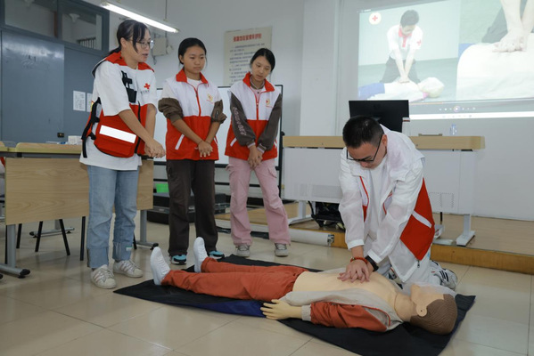 院红十字会高度重视应急救护大赛参赛相关工作,备赛期间,积极组织同学们参与报名,并开展2024—2025学年第一学期急救培训。培训由岳阳街道社区卫生服务中心的医师沈慧主讲,她用深入浅出、通俗易懂的语言,为同学们详细讲解了心肺复苏术(CPR)、自动体外除颤器(AED)的使用、创伤救护等急救技能。在沈老师的指导下,同学们不仅认真听讲,还积极参与实操训练,通过反复练习以确保熟练掌握技能。
