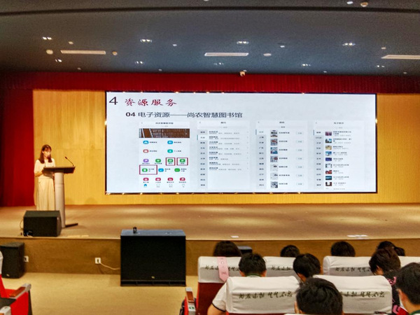 图书馆馆员邢绍艳老师向同学们介绍了图书馆的书香文化墙、借还室及综合阅览室纸质图书馆藏情况、基本设施设备等,向同学们推广了图书馆官网、图书馆微信公众号及“学习通”APP“尚农智慧图书馆”平台的使用方法、资源及服务;重点为同学们演示了电子借阅证、馆藏查询、图书荐购等服务的使用方法及电子资源的获取途径;还向同学们介绍了图书馆于近期开展的“书香农林 礼赞祖国”朗读大赛、入馆教育闯关答题、“知网杯”上海高校信息资源发现大赛等“走进图书馆、爱上图书馆”新生季系列活动,鼓励同学们走进图书馆,积极参与。