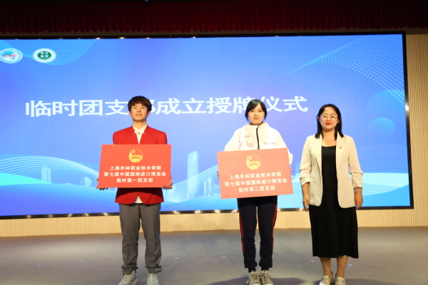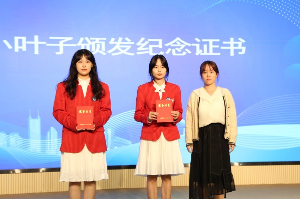 仪式上,团委书记张楠为临时团支部授牌,团委兼职副书记齐雪飞为三年级“小叶子”颁发纪念证书,团委进博会工作负责老师刘雅姗为志愿者代表赠送装备并介绍本届工作筹备情况。