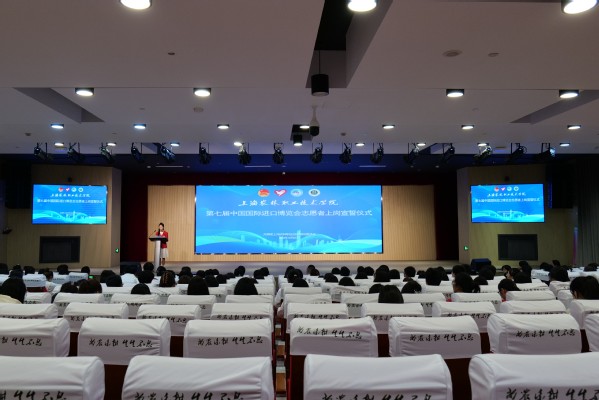 10月21日,第七届中国国际进口博览会志愿者上岗宣誓仪式在综合楼205报告厅举行,党委副书记、副院长邵阳出席,学工部、团委、各系团总支、全体第七届进博会志愿者及各系学生代表一同参加。