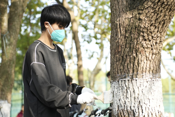 活动伊始,实训基地老师为750余名学生介绍了树木涂白的注意事项以及技术要领,并为同学们做了示范,阐述为什么要进行劳动教育,鼓励同学们除了在劳动教育课上参与劳动,更要在日常生活中主动劳动,体验劳动的乐趣与价值。之后每班分组进行现场实践,同学们也在劳动过程中展现了极高的劳动热情,不怕苦、不怕脏、不怕累,用自己的实际行动彰显劳动精神。