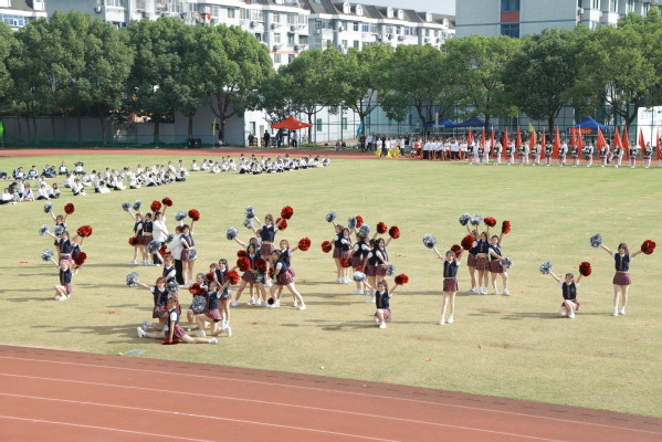紧接着,创意系团体操表演《“绿”动创意梦》精彩呈现,啦啦操队员们以充满现代感与活力的舞蹈,活力四射,青春飞扬,展现了我系学子创新进取的精神面貌。