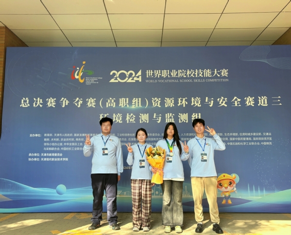 在刚刚落幕的2024年世界职业院校技能大赛总决赛争夺赛(高职组)资源环境与安全三赛道的激烈争夺中,学院代表队脱颖而出,荣获“环境检测与监测”组银奖。本次大赛于10月22日至24日在天津举办,全国59所职业院校的优秀团队同台竞技。