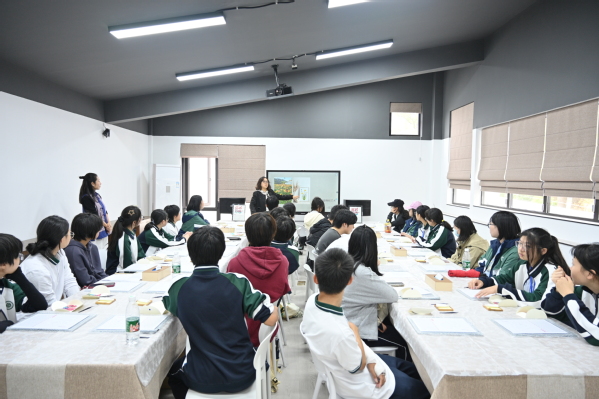 老师为大家讲解了压花艺术作为我国传统艺术的起源和历史。压花是用物理和化学的方法把植物材料经脱水、保色、压制和干燥等科学处理而成的,将植物天然的形态,自然的色泽,奇妙的纹理巧妙地组合。随后,老师细致讲解了压花台历的制作方法并进行现场演示。制作过程中,同学们通过对花材、姿态、色泽的巧妙构图,仔细观察植物纹理,充分发挥想象力,将美丽的干花一朵朵地粘贴在台历上,调整并固定,每一幅作品都是独一无二的。同学们欣赏着自己制作好的清新、雅致、自然天成的压花台历,爱不释手。