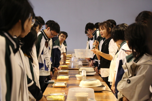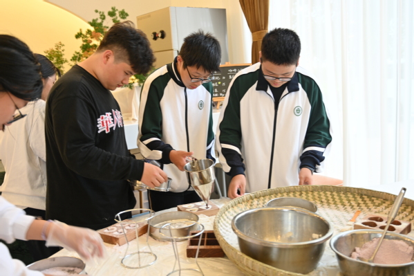 叶榭软糕,作为一种珍贵的非物质文化遗产,承载着深厚的历史与文化底蕴。老师详细讲述了这一传统美食的历史渊源,从选材的讲究到制作工艺的精湛,每一个细节都透露出匠人的智慧与对美味的极致追求。同学们在老师的带领下依次进行了筛粉、刮平、用特制的木蛋轻轻压出精致的坑洞、细心填入香甜的豆沙馅、最后再小心翼翼地脱模等一系列工序,随着一块块精致可口的叶榭软糕诞生,他们的脸上洋溢着成就感与喜悦。