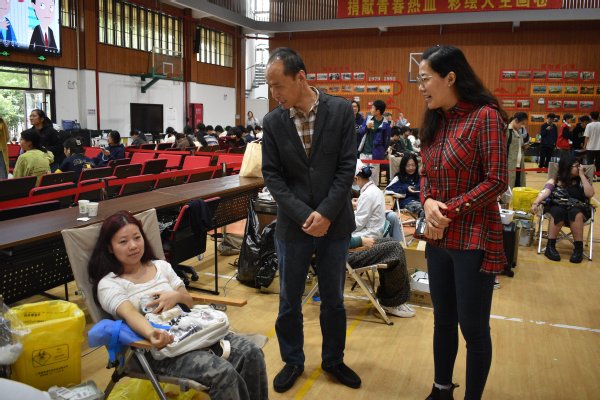 动科系主任滑志民、动科系党总支书记张海娜等一行来到现场,对献血师生表示慰问和关心,赞扬了他们的无私奉献的精神,鼓励大家将这种精神继续发扬光大,为社会做出更多的贡献。此外,学生志愿者在现场积极参与,他们不仅协助医护人员维持现场秩序,还随时准备处理可能出现的突发状况,为献血师生提供了周到的服务。