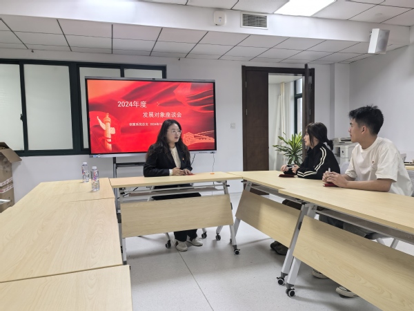 11月1日,在综合楼701室,创意系党总支召开发展对象座谈会,进一步了解发展对象思想动态等近况,督促发展对象加强理论学习,增强对发展对象德育教育,推动发展对象提升个人综合素质。座谈会由创意系专职组织员孙丽婷主持。