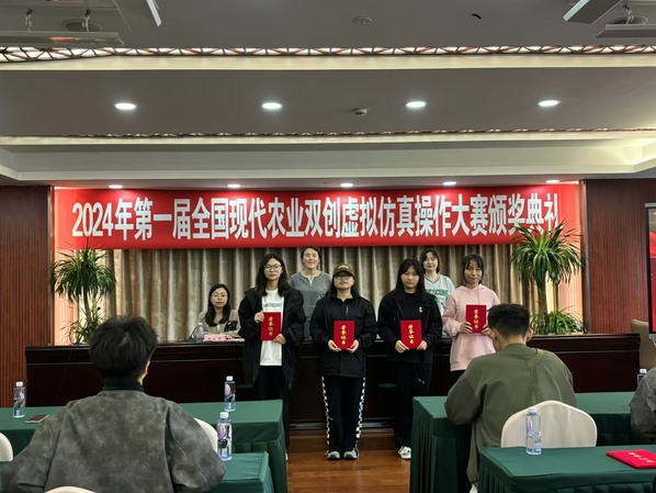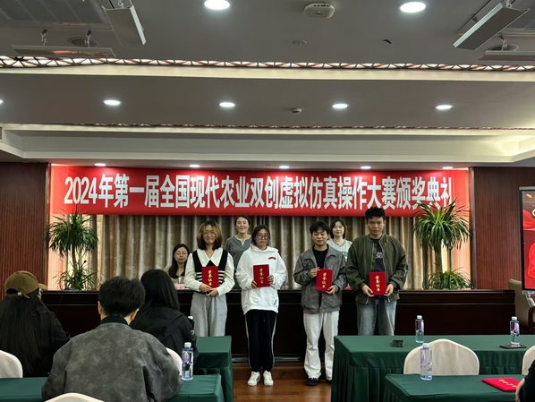 10月31日,2024年第一届全国现代农业双创虚拟仿真操作大赛颁奖典礼在学院举行,本次颁奖典礼采取线下举办、线上直播的形式。智工系副主任王妍、赵文旻、专业负责人李珈慧以及获奖代表参加线下颁奖典礼,其余院校参赛师生参加线上直播。